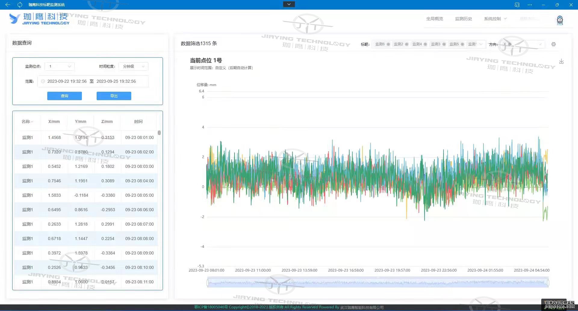 安裝與布設(shè):珈鷹科技在項(xiàng)目部所在地附近的滑坡體布設(shè)了一個(gè)基準(zhǔn)標(biāo)靶和六個(gè)標(biāo)靶點(diǎn),采用珈鷹JY-TV-LS型邊坡變形監(jiān)測(cè)儀進(jìn)行實(shí)時(shí)監(jiān)測(cè)。在實(shí)施過程中要選擇合適的監(jiān)測(cè)點(diǎn)位,通常在滑坡體的重要部位設(shè)置固定標(biāo)靶。然后,安裝邊坡變形監(jiān)測(cè)儀,確保拍攝視野無遮擋。