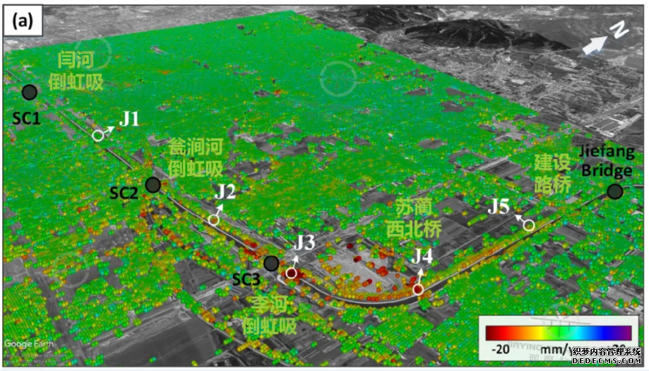 珈鷹科技曾在南水北調中線工程全域普查的項目中,采用SBAS-InSAR方法獲取某高填方渠段的變形結果,提前發現李河倒虹吸——建設路橋渠段 2019 年初加速變形明顯,從而對該區域展開重點監控和加固措施,有效避免了可能發生的重大事故。